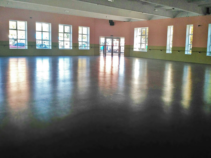 - Зал (100 м2) для спортивных секций, групповых занятий (отопление, свет, розетки, раздевалка, санузлы, звуковая аппаратура);