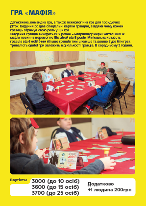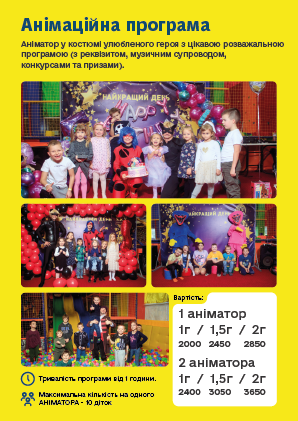 - Грамотно підберемо аніматорів та інструкторів.