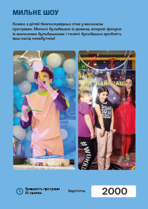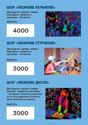 Запевняємо Вас - це доступно! Все, що ми Вам запропонуємо, буде нашими ресурсами! Скиньте турботи по організації Дня Народження на нас! Подаруйте дитині яскраві і незабутні емоції!
